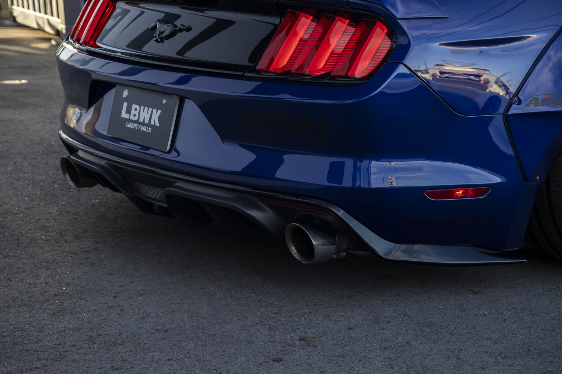 The Ford Mustang Liberty Walk Rear Diffuser is available in high-strength FRP only and designed for OEM fitment on the S550 Ford Mustang.